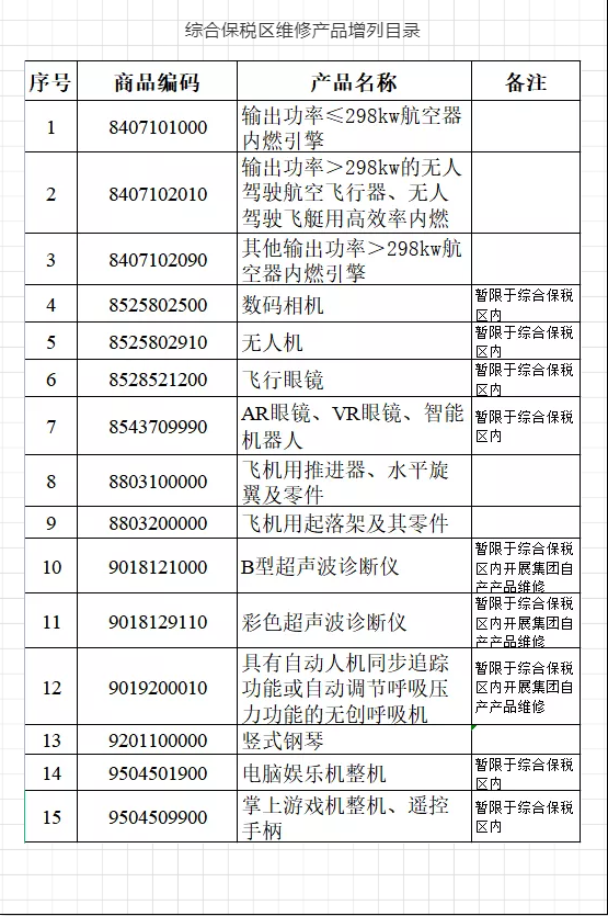 綜合保稅區(qū)第二批保稅維護產(chǎn)品目錄公布啦~