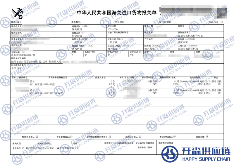 深圳機場高端顯卡進口報關(guān)代理服務(wù)【清關(guān)案例】