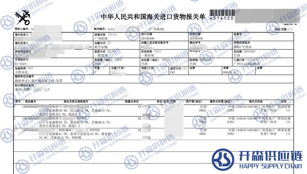 一、巴西餅干進口報關(guān)代理案例詳情