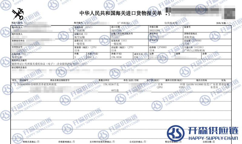 廣州機(jī)場(chǎng)營(yíng)養(yǎng)素飲料濃漿進(jìn)口報(bào)關(guān)清關(guān)代理服務(wù)【經(jīng)典案例】