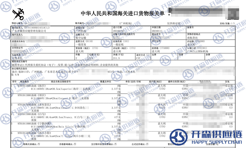 一、廣州機(jī)場意大利油畫進(jìn)口報關(guān)代理案例詳情